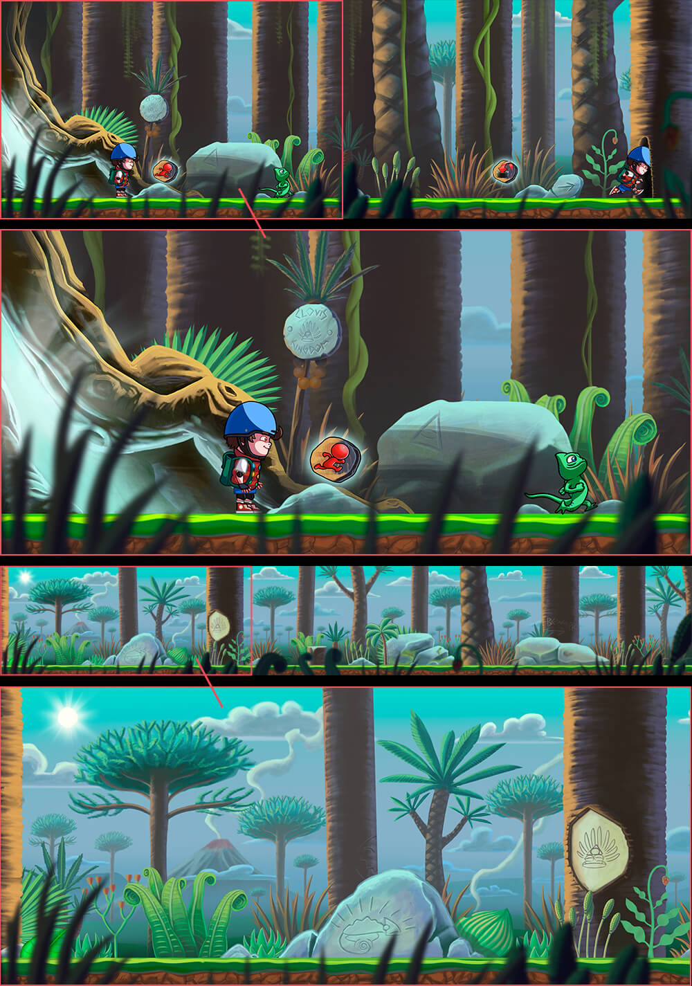 Background Design, Game Art, Forest cartoon background, prehistoric background