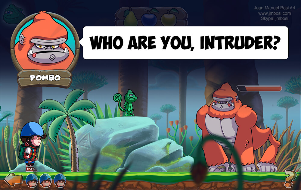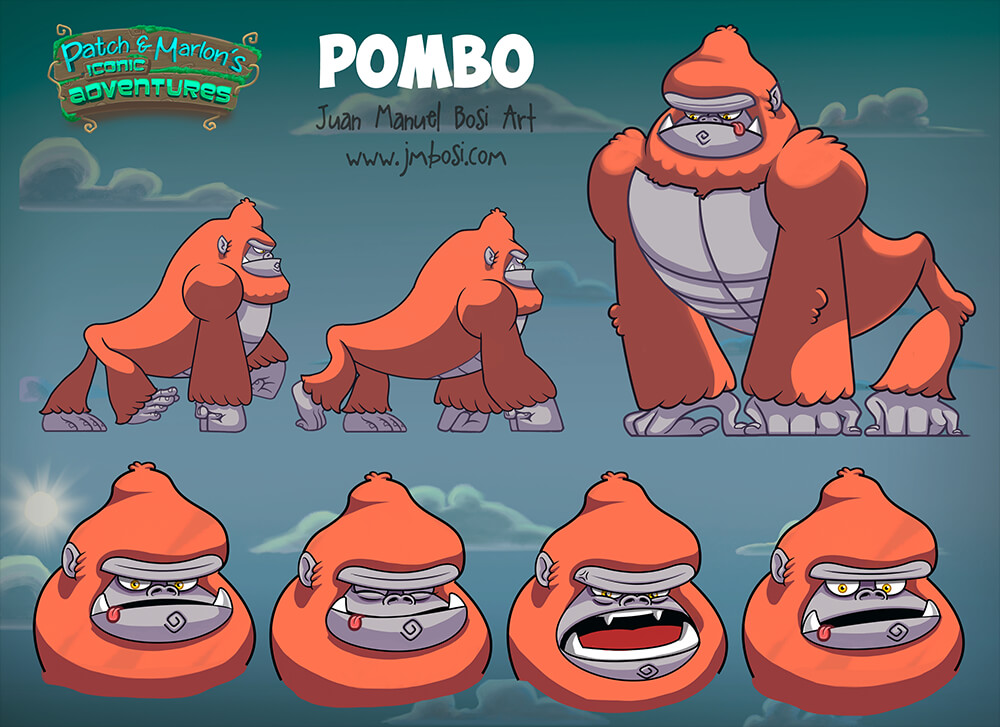 Character design: Pombo, Monkey cartoon design, big monkey prehistoric, dumb character