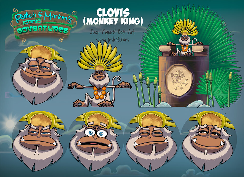 Character design: King Clovis, Monkey cartoon, King of monkeys, animal cartoon design